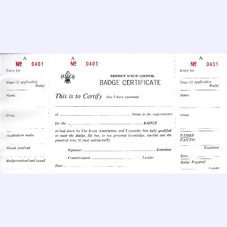 - Stub with details of Badges issued.