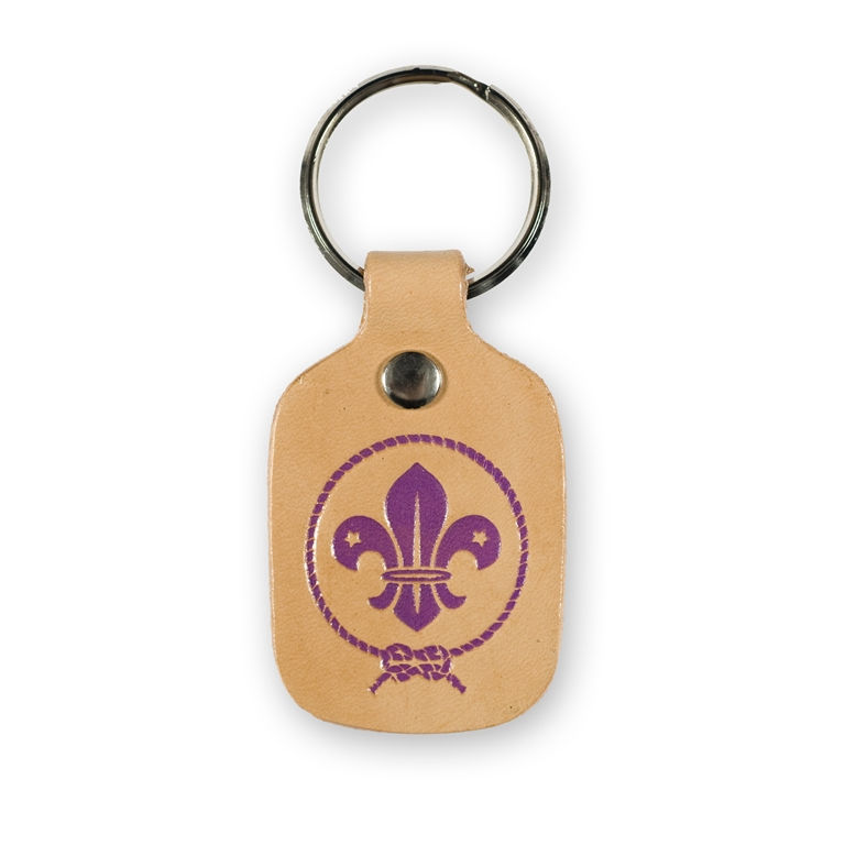 - Metal keyring with leather fob embossed with World Scout Logo.